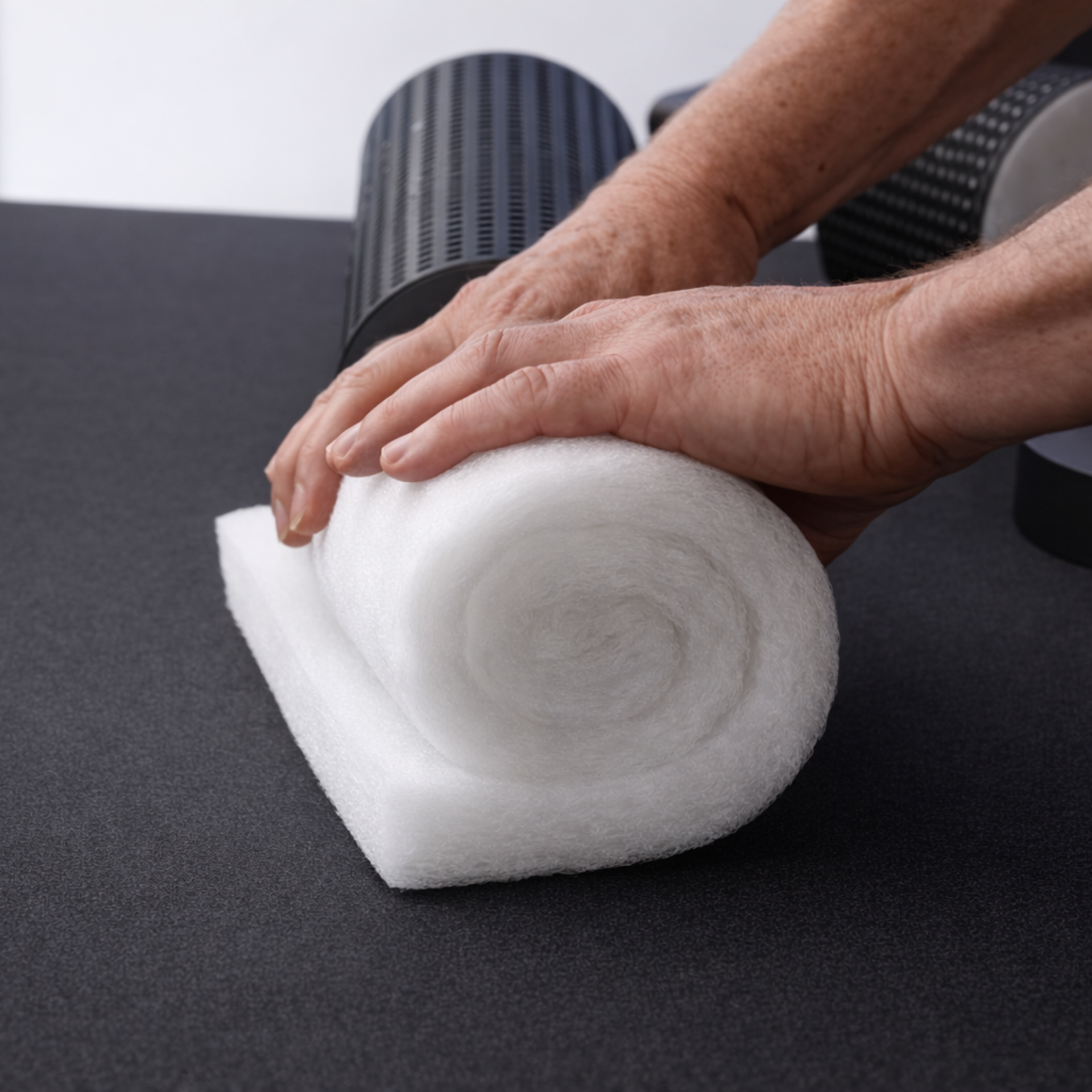 - Roll up the filter strips and insert them into the housing.