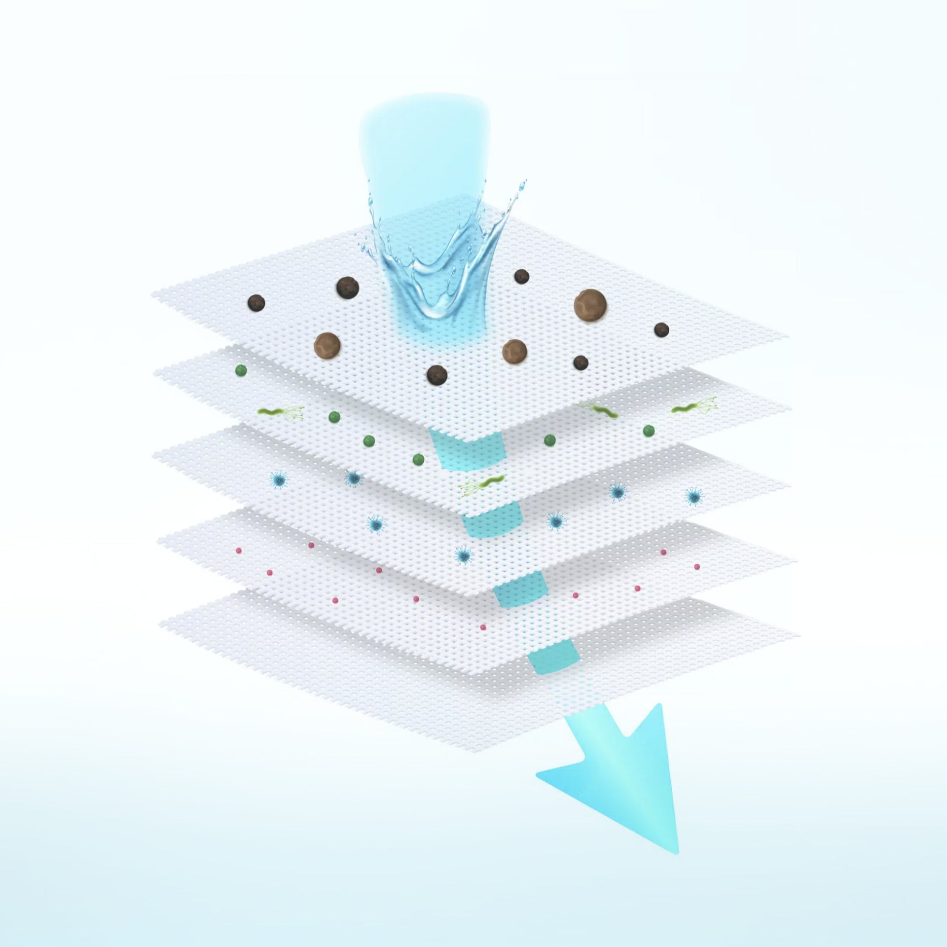 Im Gegensatz zu einfachen Standardkartuschen füllt PureFlow das gesamte Filtergehäuse aus und bietet damit über 250-mal mehr Filtervolumen, eine hohe Durchströmung sowie eine maximale Filterleistung bis unter 1 Mikron. - Einfache Reinigung und Wartung: