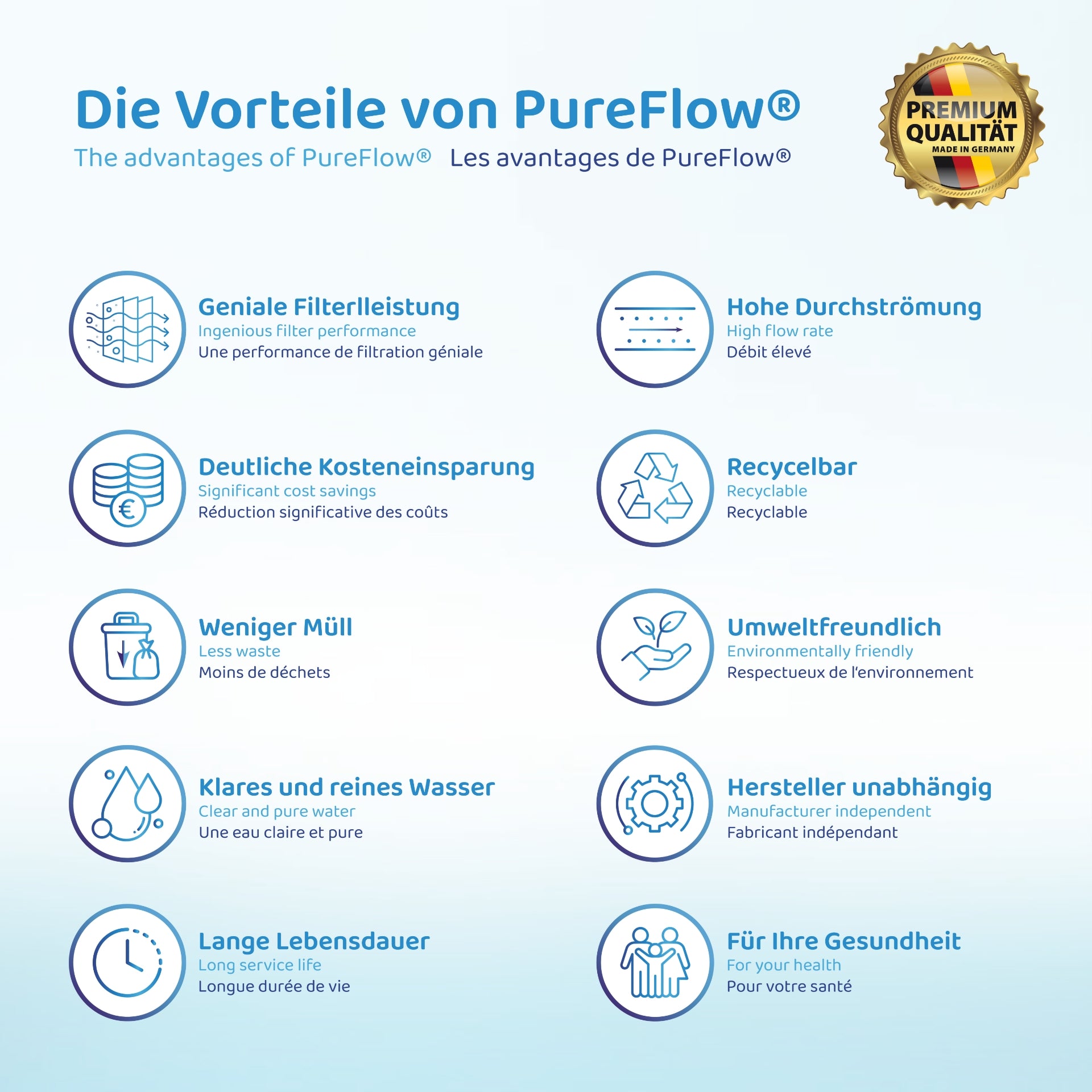Die vollständige Bedienungsanleitung und weitere Pflegehinweise finden sie auf unserer Website www.pureflow-filter.com: